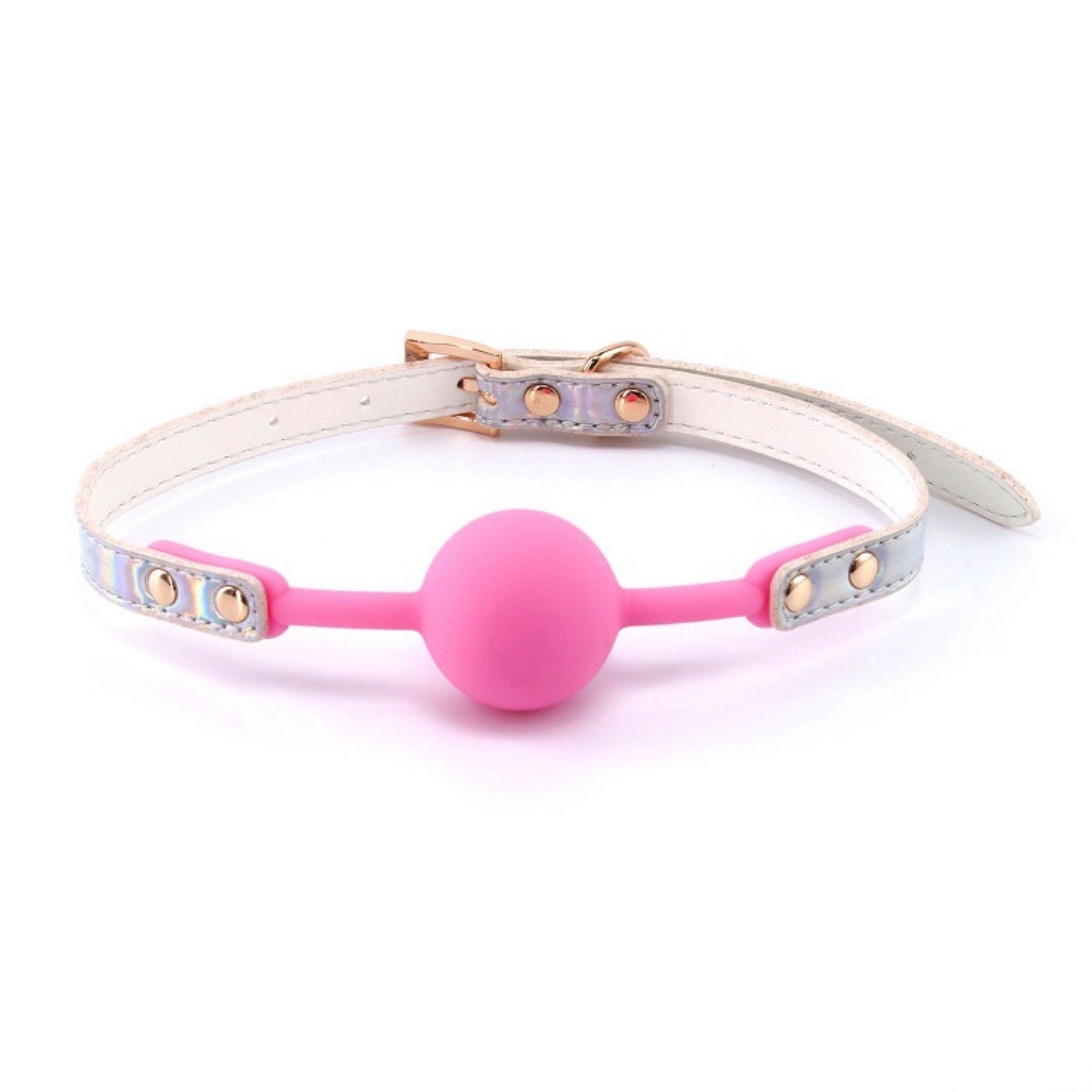 COSMO - LYSERØD GAGBALL MED HOLOGRAFISK REM