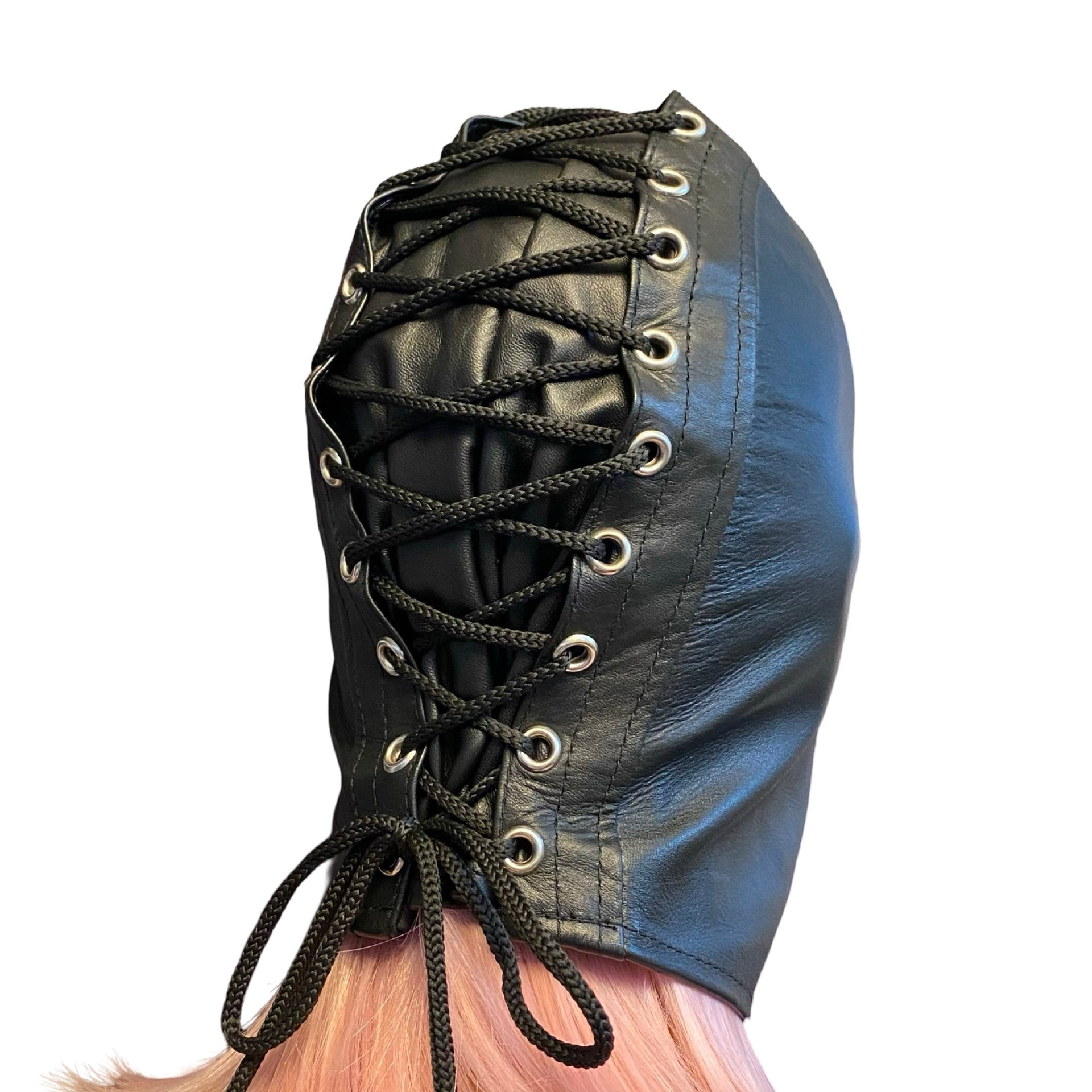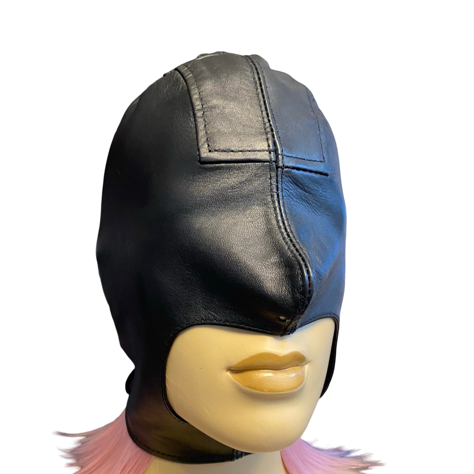 Læder hood med åbning til mund og hage