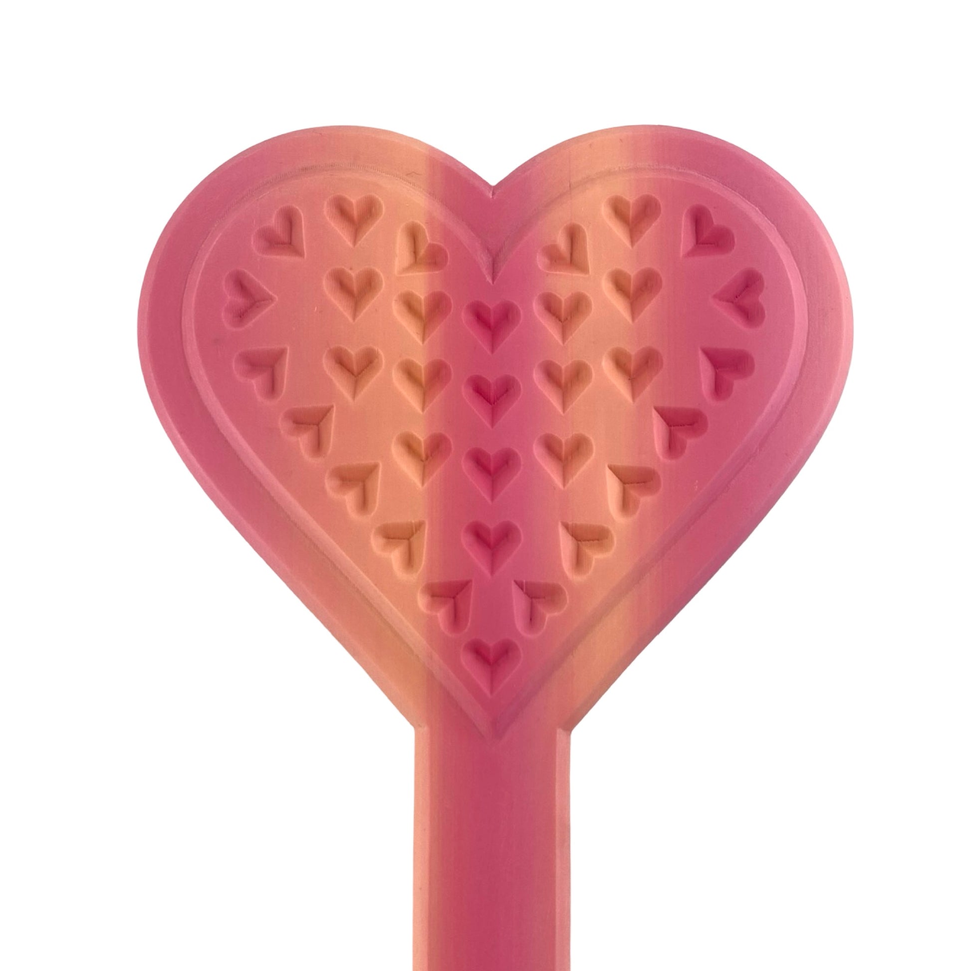 De mange omvendte hjerter blødgør slaget en smule, men på grund af dens størrelse kan dette smukke hjerte let give et ordentligt smæk. Vend legetøjet om, hvis du foretrækker ikke at blødgøre dine slag – hvor lidt det end måtte være – med de omvendte hjerter.